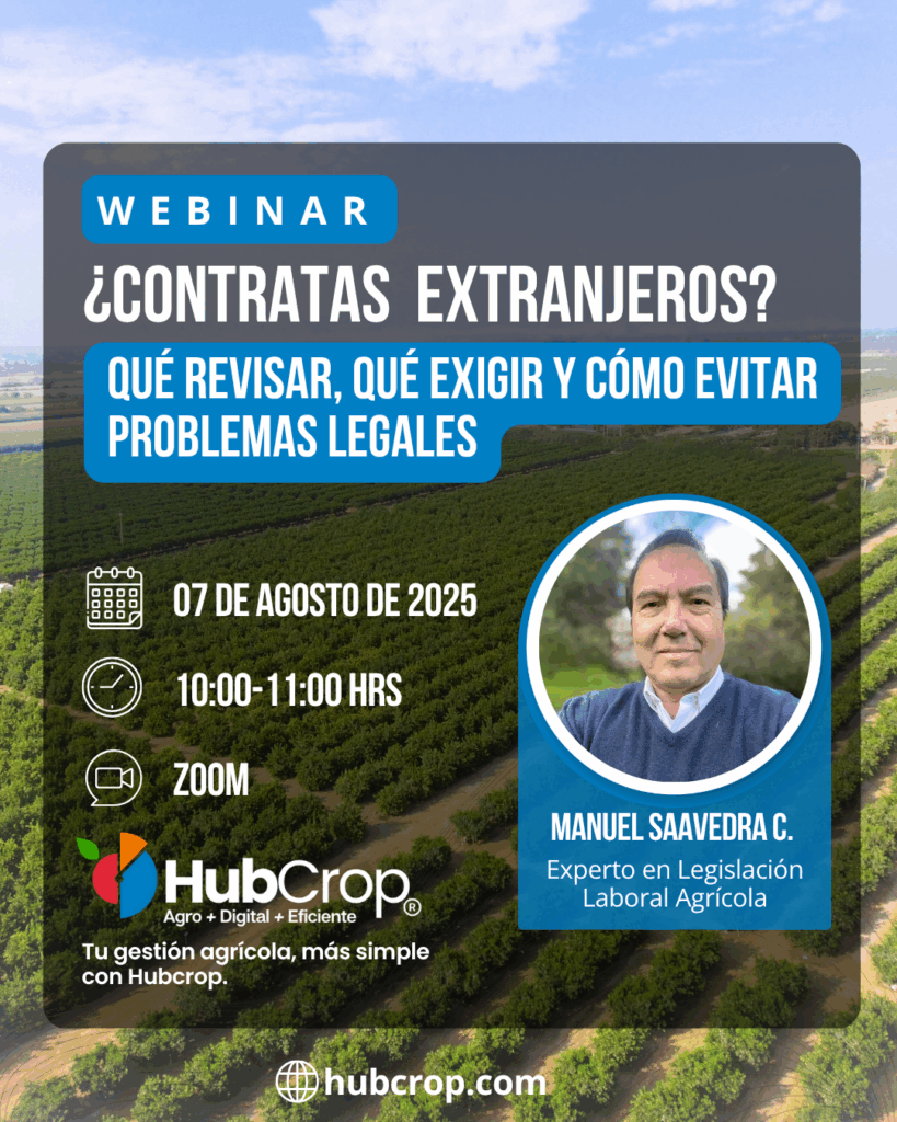 Si estás contratando o pensando en contratar trabajadores extranjeros para tu campo, este webinar es para ti. A muchos productores y administradores les surgen dudas sobre qué documentos solicitar, qué detalles revisar o cómo garantizar que todo esté en regla, y sabemos que un simple descuido puede generar complicaciones legales o multas inesperadas.
